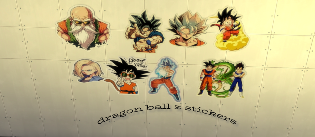 1. Enhance your Sims 4 gaming experience with these vibrant Dragon Ball Z stickers, featuring iconic characters like Goku, Vegeta, and Piccolo.
