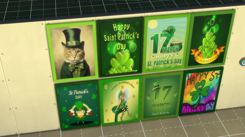 1. Enhance your Sims 4 gameplay with the Saint Patrick's Day Picture, a delightful addition to your virtual home decor. This picture captures the essence of the festive holiday, featuring vibrant green hues and iconic symbols like shamrocks and leprechauns. Hang it on your Sim's walls to infuse their living space with a touch of Irish charm and luck. The high-quality graphics and intricate details make this picture a visually appealing focal point in any room. Celebrate Saint Patrick's Day in style with this must-have item for all Sims 4 enthusiasts.