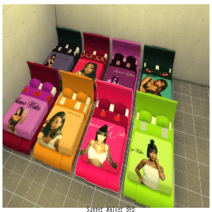 1. Introducing the R&B singer Summer Walker Bed for Sims 4, a must-have addition to your virtual bedroom! This exquisite bed is inspired by the sultry and soulful vibes of Summer Walker's music, bringing a touch of elegance and sophistication to your Sims' sleeping quarters. Crafted with meticulous attention to detail, this bed features a sleek and modern design, with a plush upholstered headboard and a sturdy frame that ensures both comfort and durability.