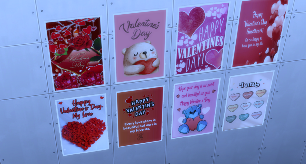 Celebrate love in The Sims 4 with our exclusive Valentine's Day Posters, designed to enhance your virtual romantic ambiance. These beautifully crafted posters feature charming designs and heartfelt messages, perfect for decorating your Sims' homes and setting the mood for the season of love. Ideal for players looking to add a festive touch to their gameplay, these posters are easy to install and will bring a delightful atmosphere to any Sim's space.