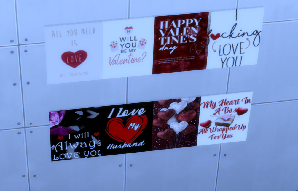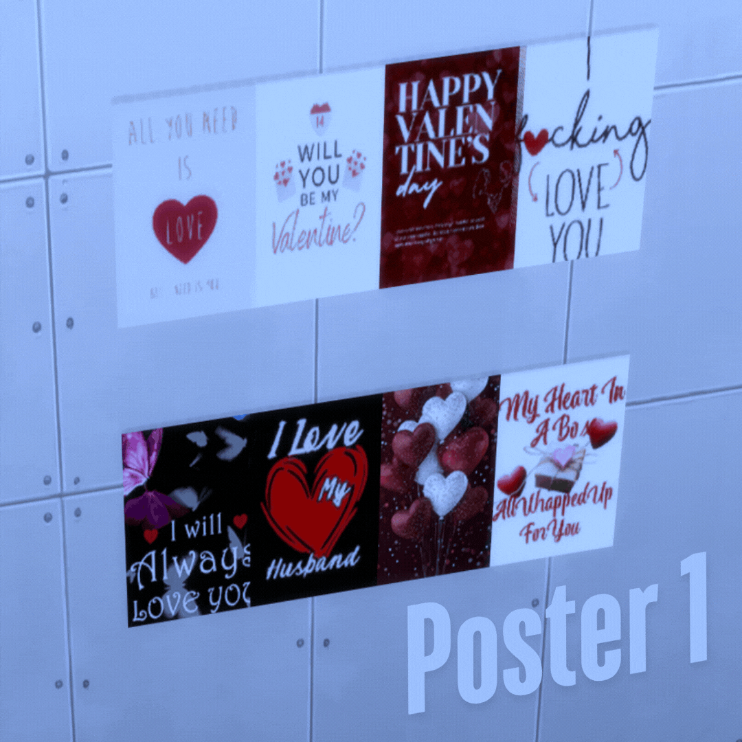 Celebrate love in The Sims 4 with our exclusive Valentine's Day Posters, designed to enhance your virtual romantic ambiance. These beautifully crafted posters feature charming designs and heartfelt messages, perfect for decorating your Sims' homes and setting the mood for the season of love. Ideal for players looking to add a festive touch to their gameplay, these posters are easy to install and will bring a delightful atmosphere to any Sim's space.